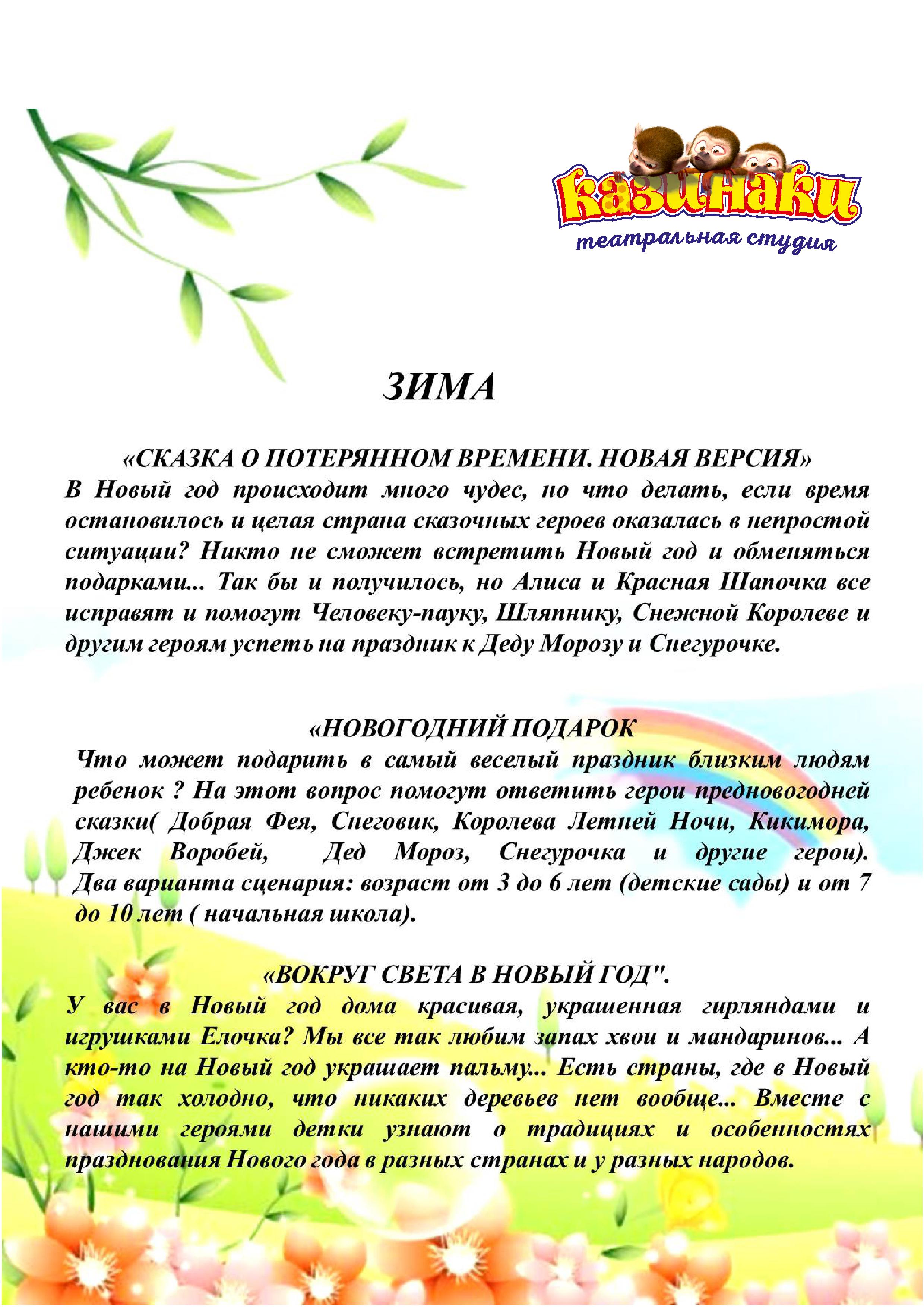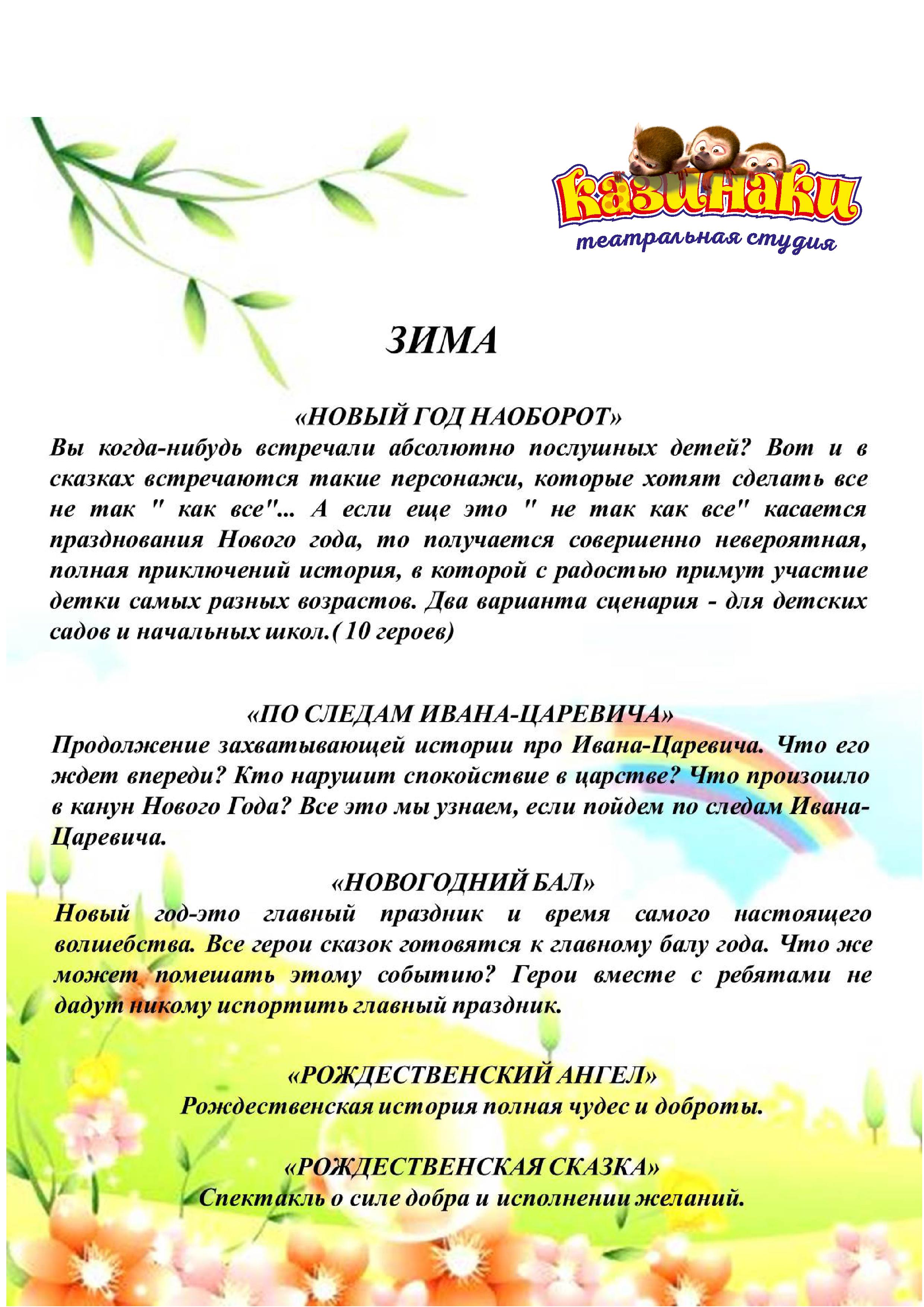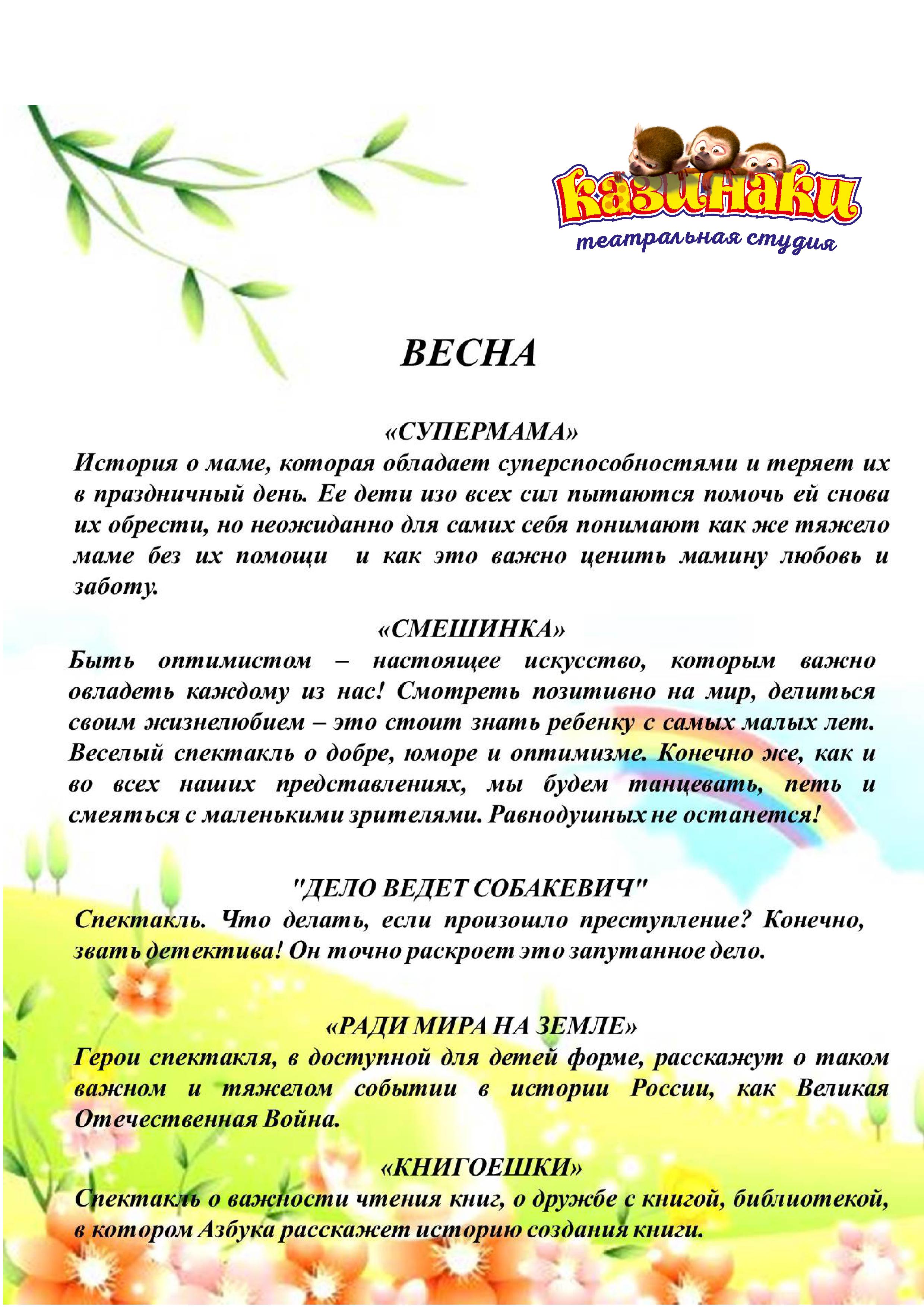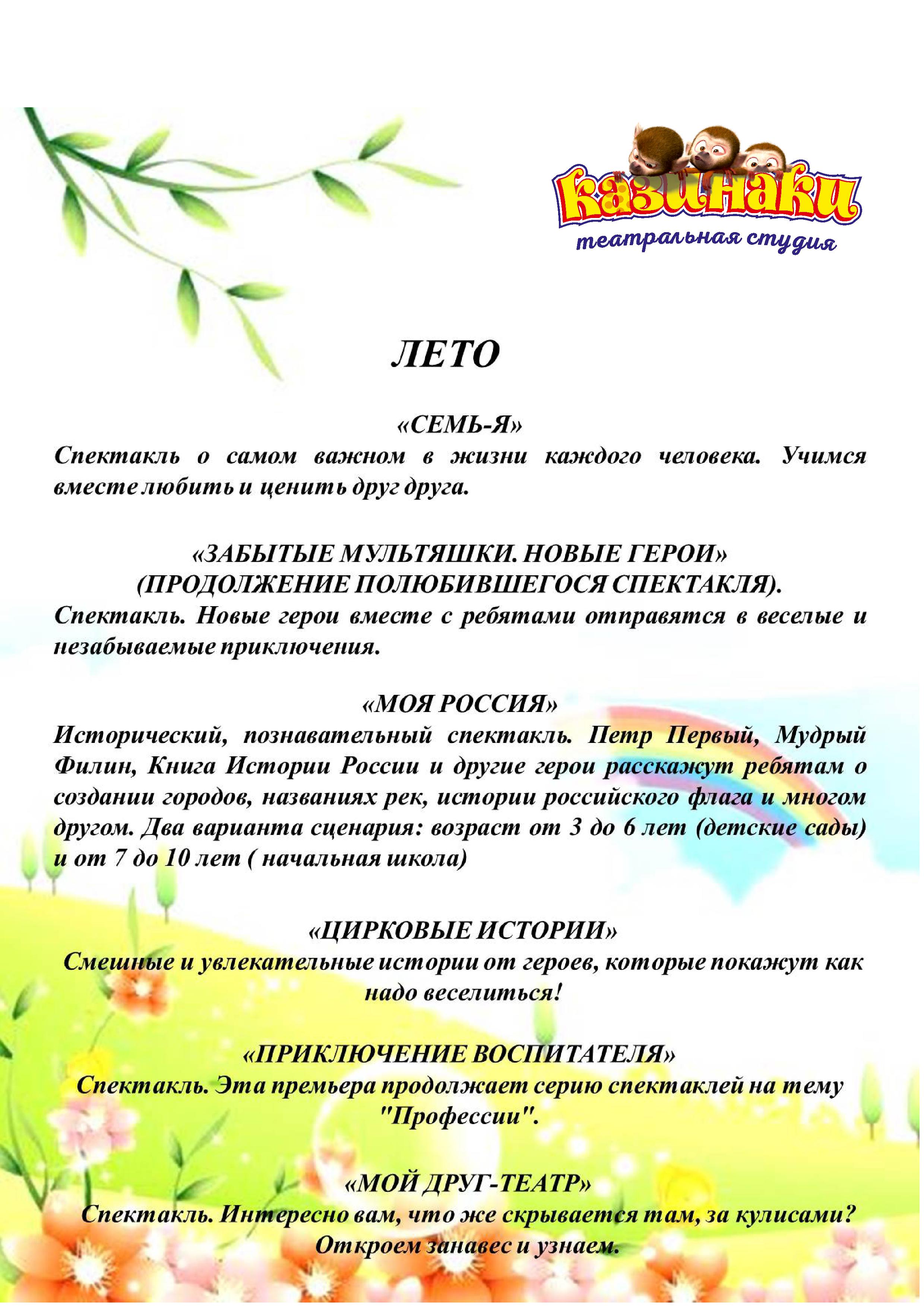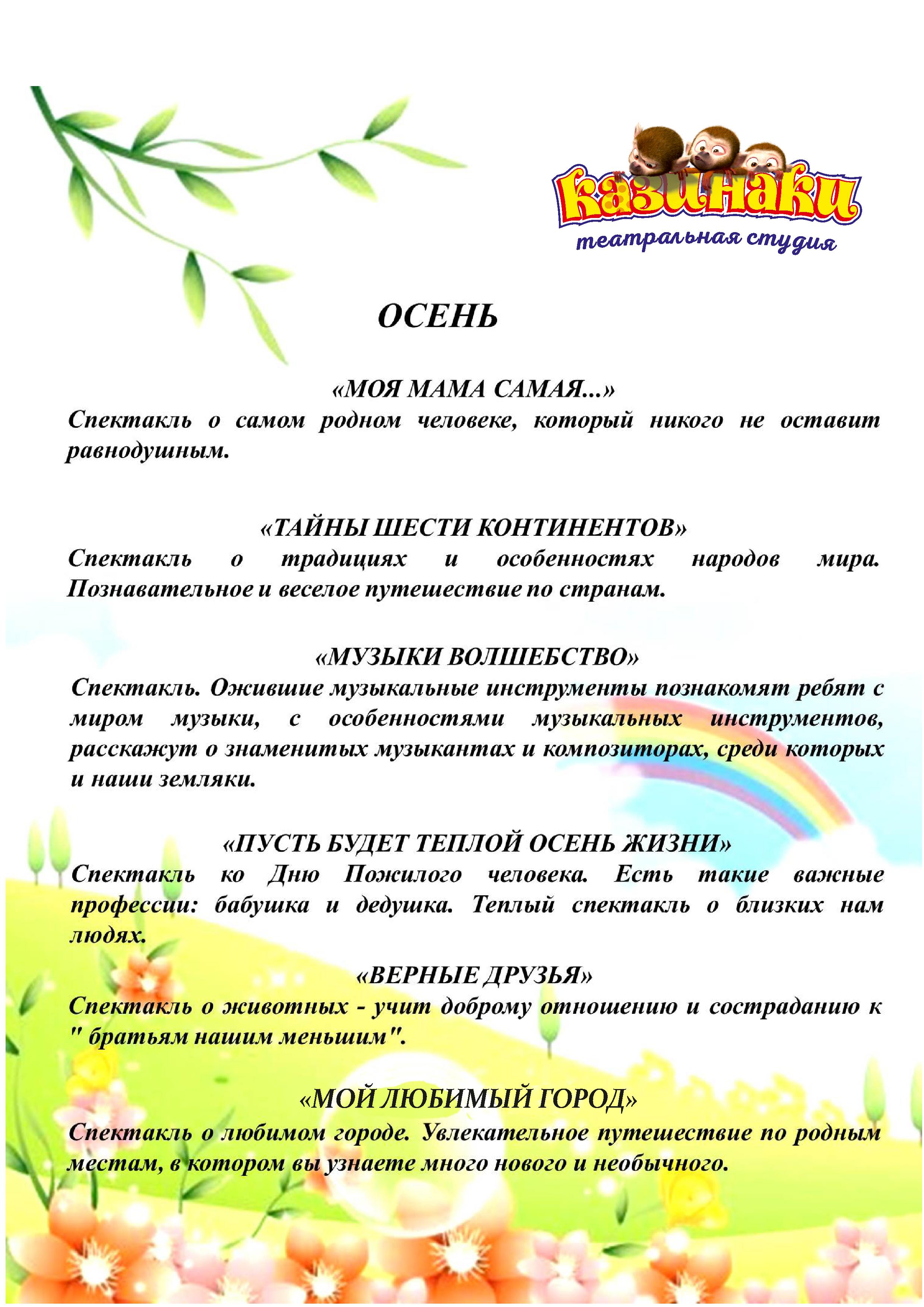 Спектакли для детских садов и школ